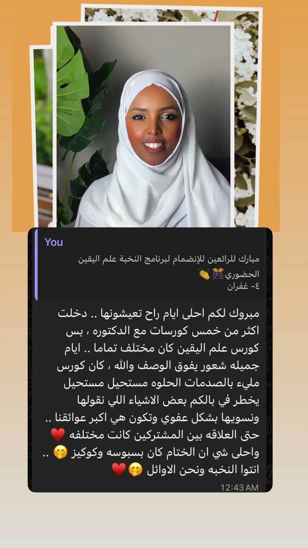 أنا حليمة أتذكر نفسي عندما كنت أتذوق طعم التهميش حين لم يُسمع صوتي ولا علمي بهذا الشكل الهائل (أحمد الله على ما وصلت إليه)