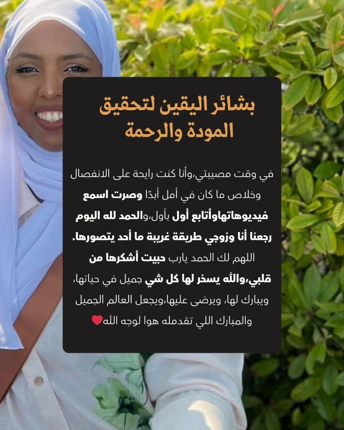 وبعدها مباشرة: راح أعطيك خطوة بخطوة كيف تحصل على المودة والرحمة من خالقك مباشرة بحيث راح تنصدم مثل مشتركينا الرائعين السنه الماضيه، كيف رجعت المودة والرحمة في علاقاتهم بدون ما ينطقون بولا حرف مع الطرف الآخر!