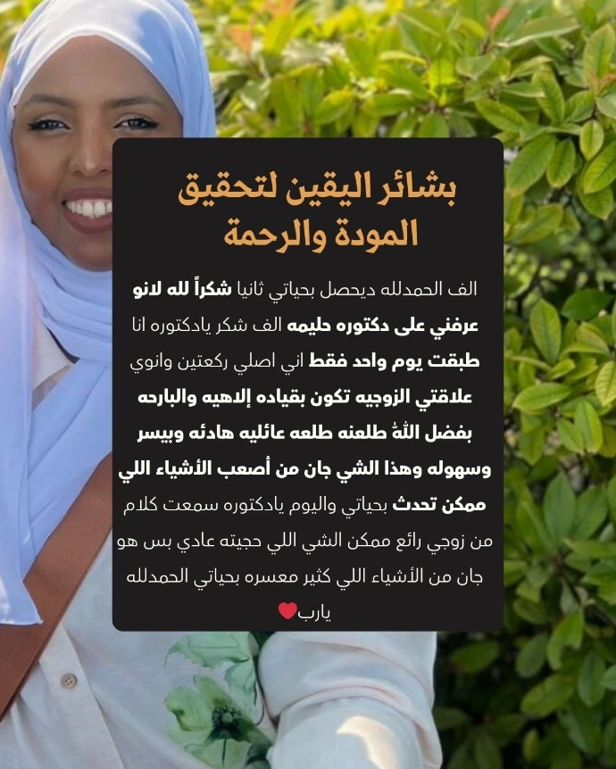 وللشخص الذي على وشك أن يبدأ بعلاقة مهمه وتراوده بعض المخاوف من عدم نجاحها ويرغب في ضمان إستمرارها بالمودة والمحبة والرحمة !